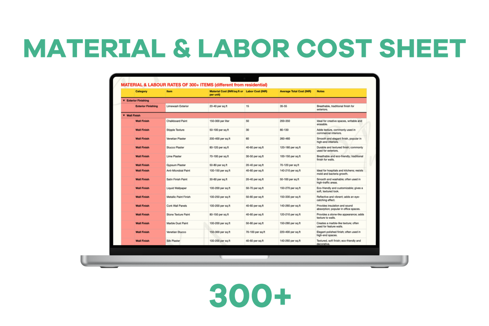 😍 300+ Material & Labor Cost Cheat Sheet: A reference to help you prepare your block estimates with ease. (Rates are collected from different vendors, cannot be used as a replacement, only made for getting a rough idea about the costing in market)