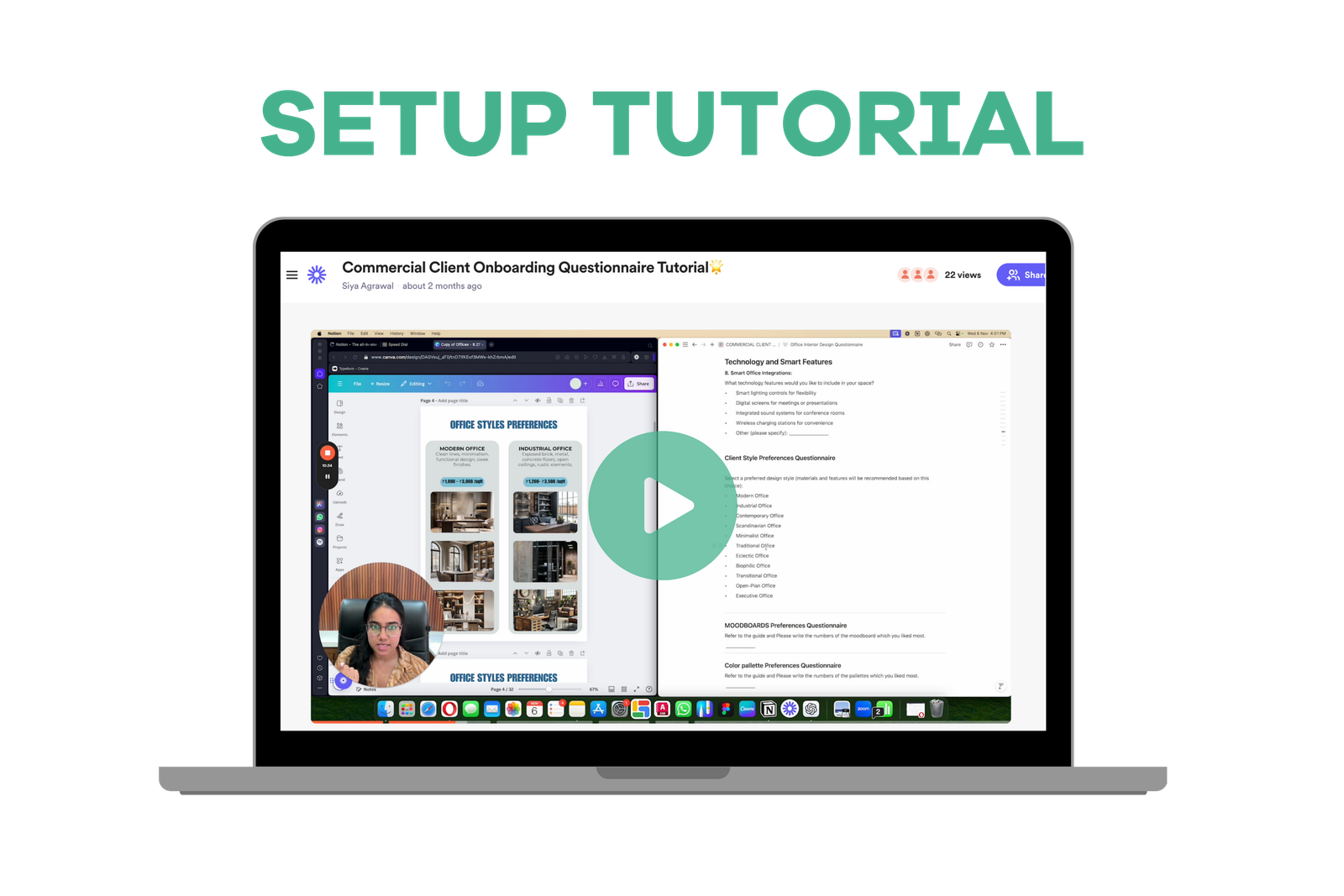 The Commercial Client Onboarding Questionnaire Template has been my secret for effortless onboarding. This customizable template is designed specifically for INTERIOR DESIGNERS / ARCHITECTS, gathers all the essential information you need upfront, INSTEAD OF DOING ALL THE TALKING MANUALLY. Stop wasting time – focus on what you do best (ofc desinging).