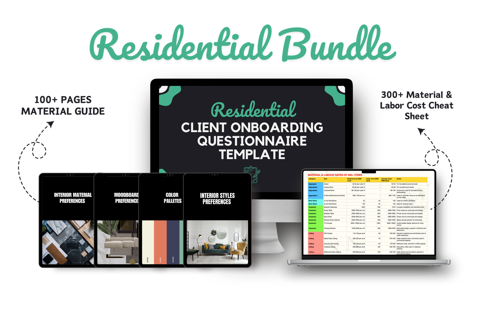 😍 100-page Detailed Design & Material Guides: (to be sent to your clients with the questionnaire / can be used for your own learning)